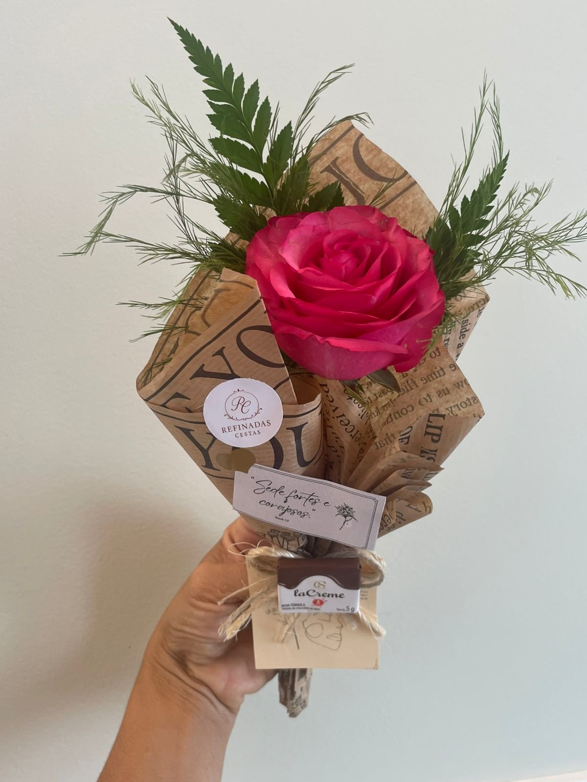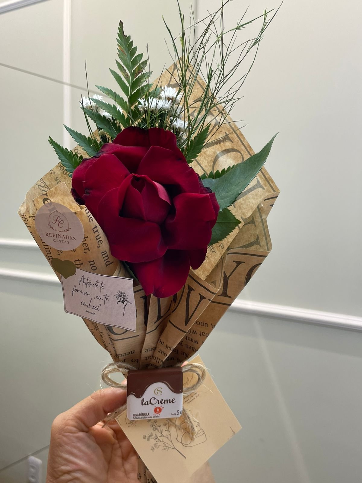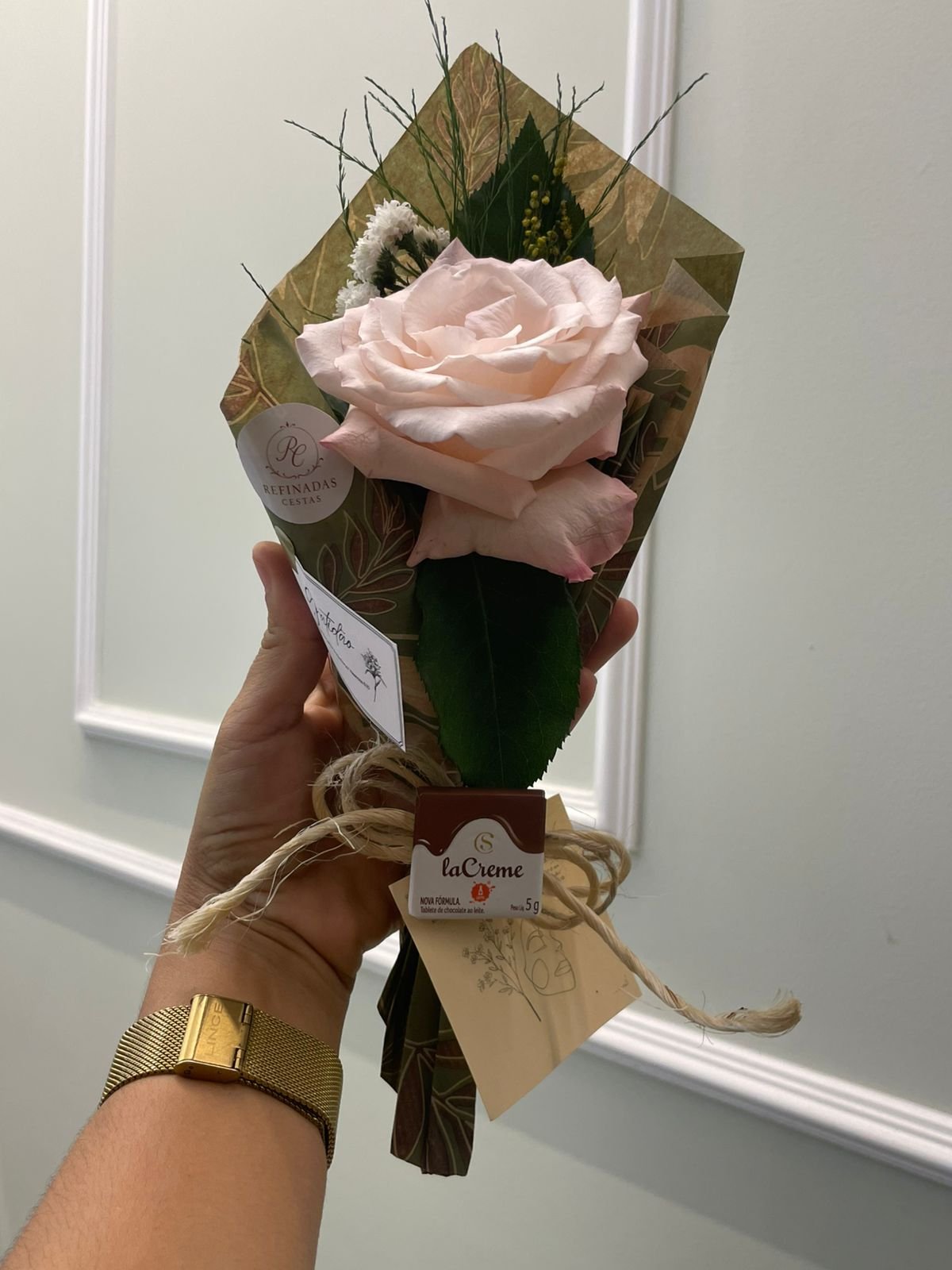 Flor nobre natural unitária (Rosa ou Gérbera)Papelaria afetiva TAG personalizado Mini Tablete de chocolate da Cacau Show