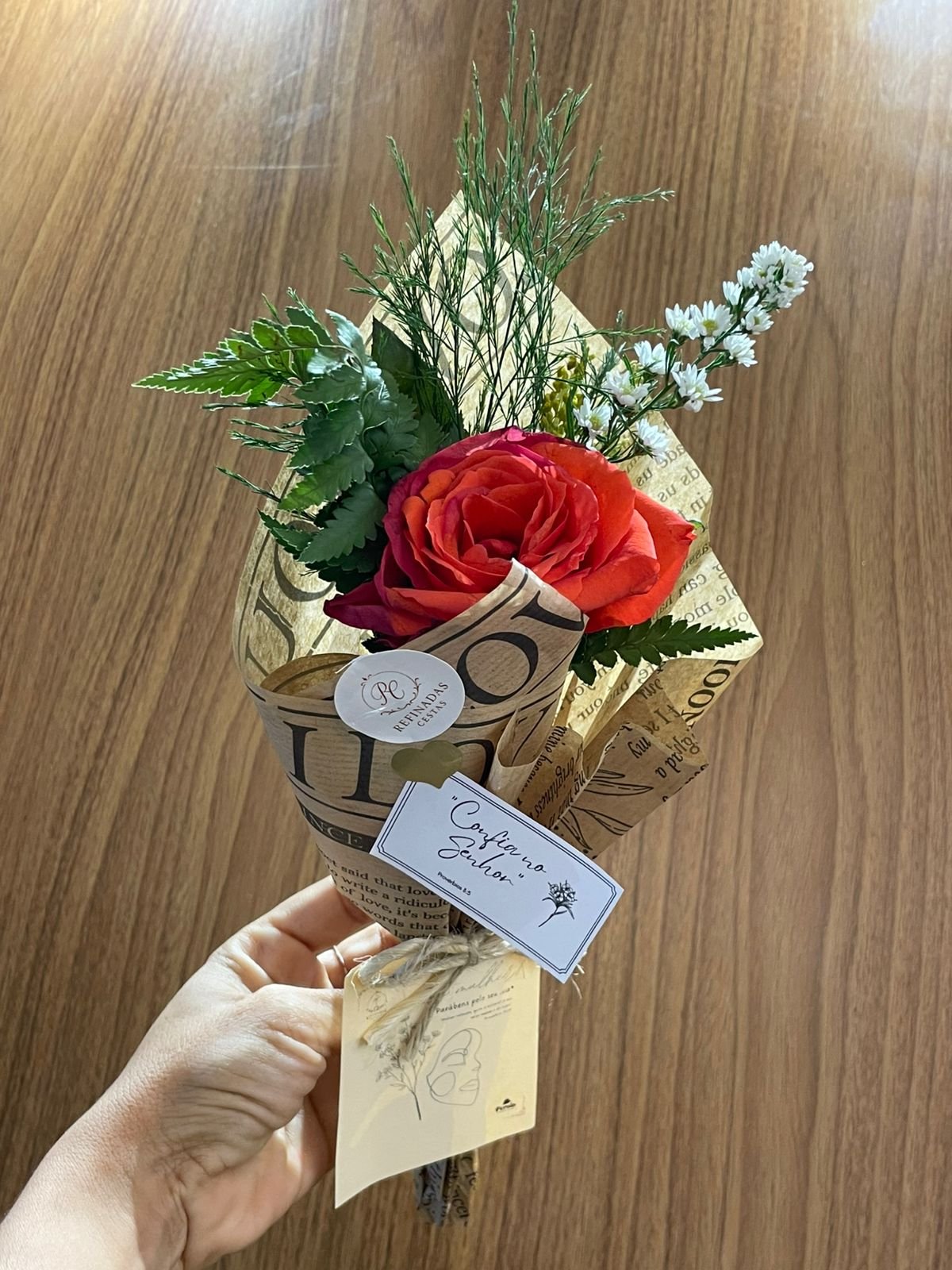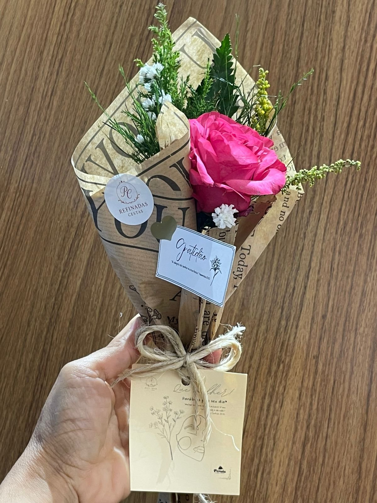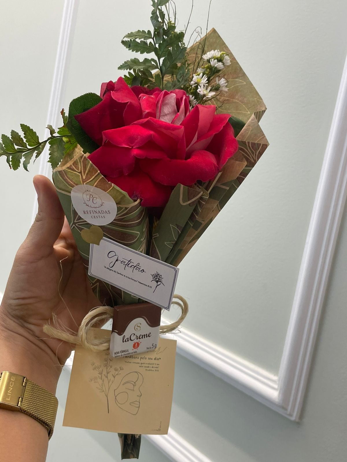 Flor nobre natural unitária (Rosa ou Gérbera)Papelaria afetiva TAG personalizado Mini Tablete de chocolate da Cacau Show